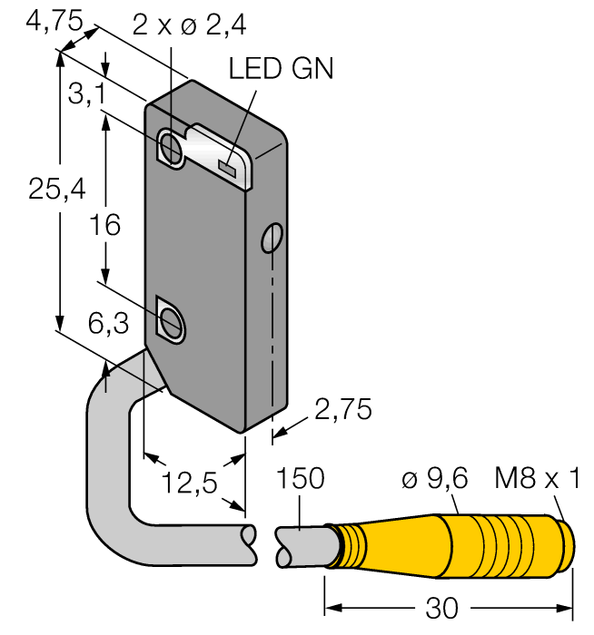 12.5 x 4.75 x 25.4 mm
