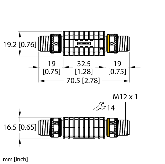 Connector, M12 × 1, Recht